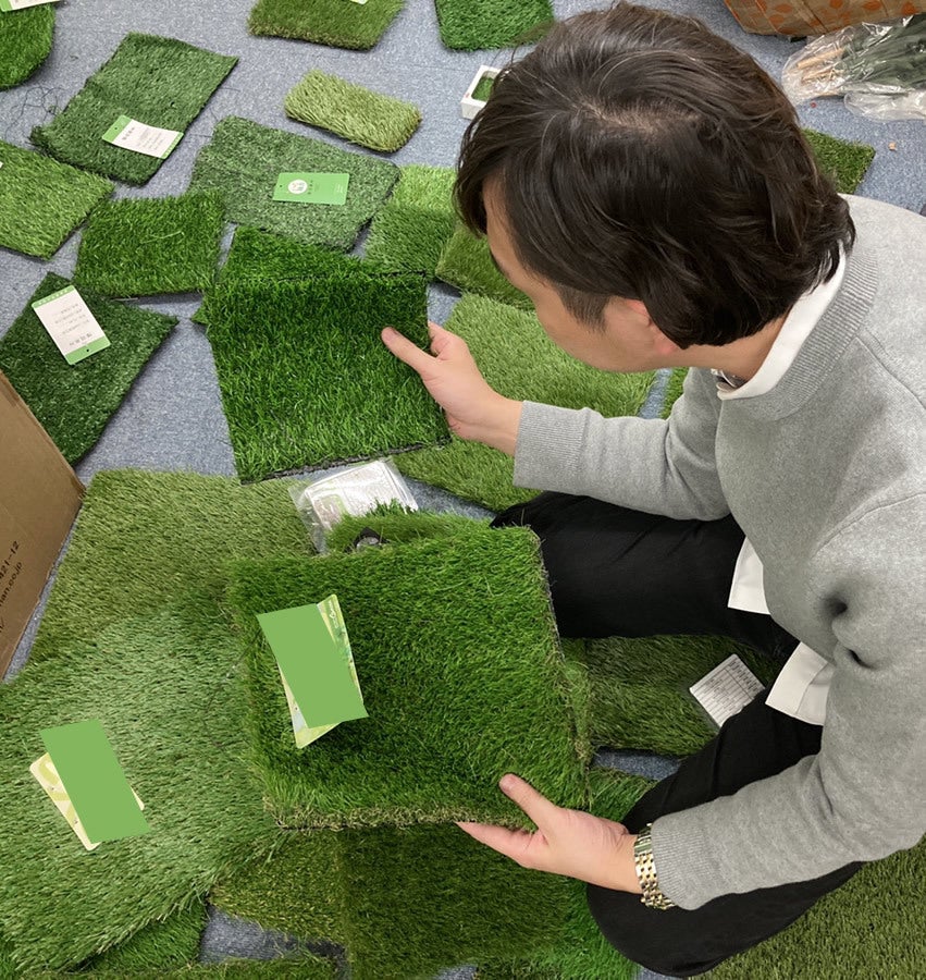どれが一番天然芝の質感に近いのか、また手触りはどうなのか研究する日々を送りました。
