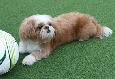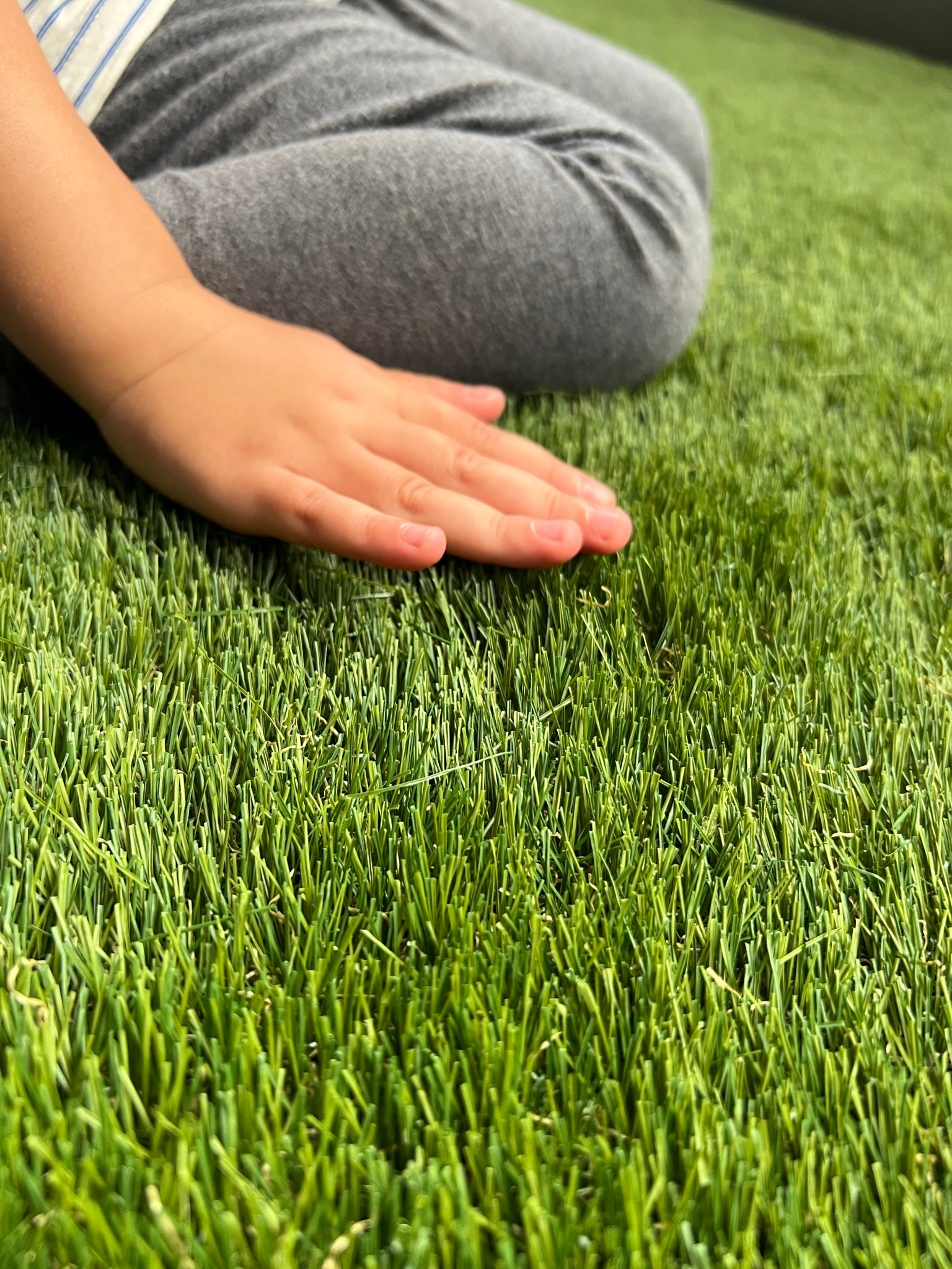 「本物の天然芝の風合いがあり、フワフワで子供やペットにも安全安心、