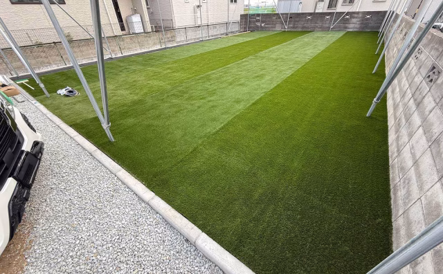 兵庫県西明石市の有限会社創築様が施工した、人工芝サッカー練習グラウンドの施工事例をご紹介します。 「Before」既存の状態 こちらは既存の状態の画像です。サッカーグラウンドとして使用するには、下地の整備が必要な状態でした。 また土のままだ